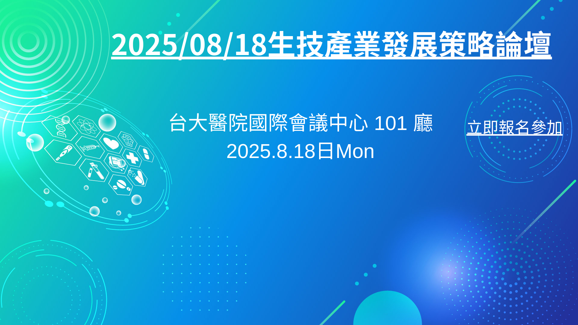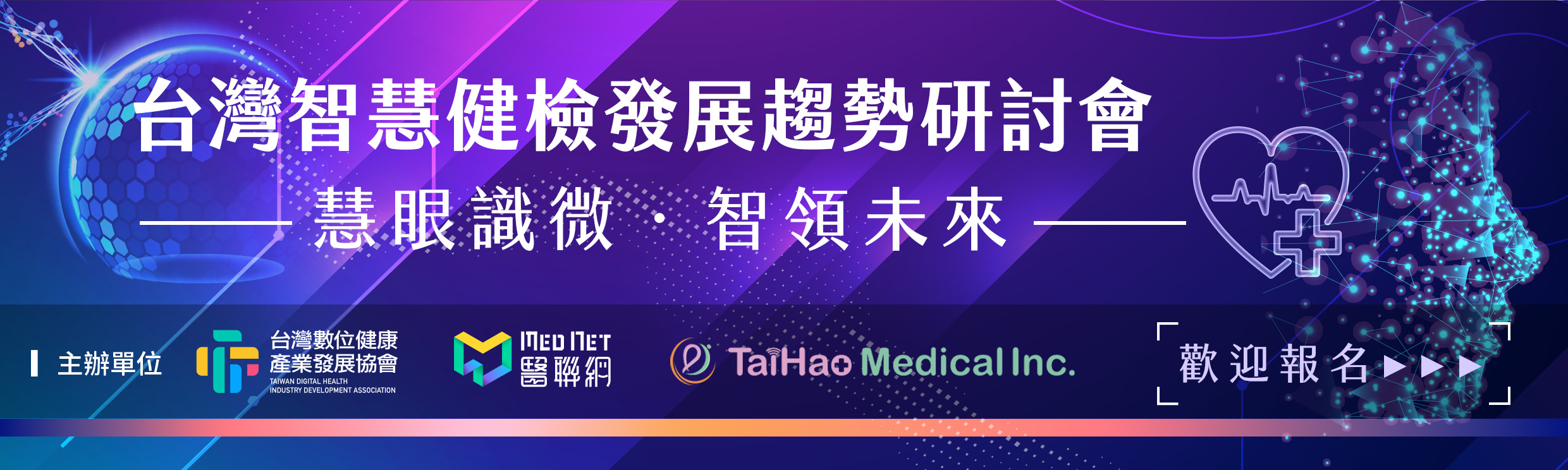 誠摯邀請您參與一場探討智慧健康未來的盛會!本次論壇以「科技賦能,促進全民健康」為主題,匯聚多位醫療與科技領域的專家,共同探討如何透過新科技提升全民健康。